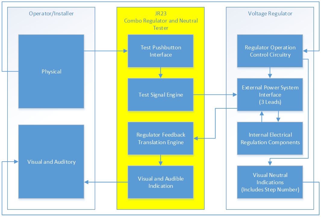 While the primary purpose of the JR23 is a safety device to save lives, it also provides other benefits. The JR23 can save time and money by detecting failures of voltage regulators at different stages of ownership. For instance, the JR23 can detect multiple failures of the voltage regulator before it is even unloaded from the truck at initial receipt, prior to loading for transportation to the job site, and then prior to energizing the voltage regulator where it becomes a safety issue. Detecting the failed voltage regulator early prevents the cost and time of handling a failed voltage regulator. The JR23 tests the voltage regulator for the following with a simple automated test.